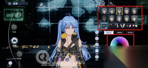 4、在发型选项中,可以挑选喜欢的发型、配饰,还能调整头发的颜色和光泽。