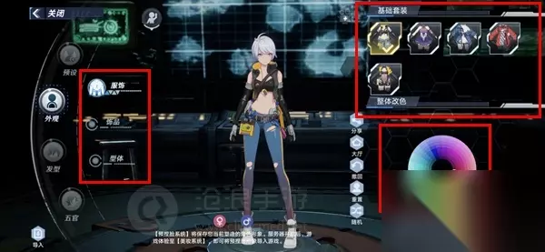 3、在外观选项中,可以进行“服饰”、“饰品”、“型体”的修改,还能选择服装以及颜色。