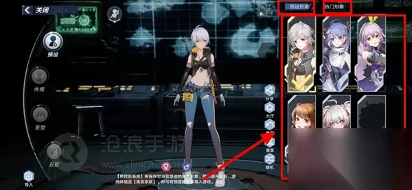2、进入到捏脸界面,可以选择“预设形象”、“热门形象”,在预设形象中还能挑选角色进行设置,热门形象中是已经捏好的脸型,当然也可以自己再进一步修改。