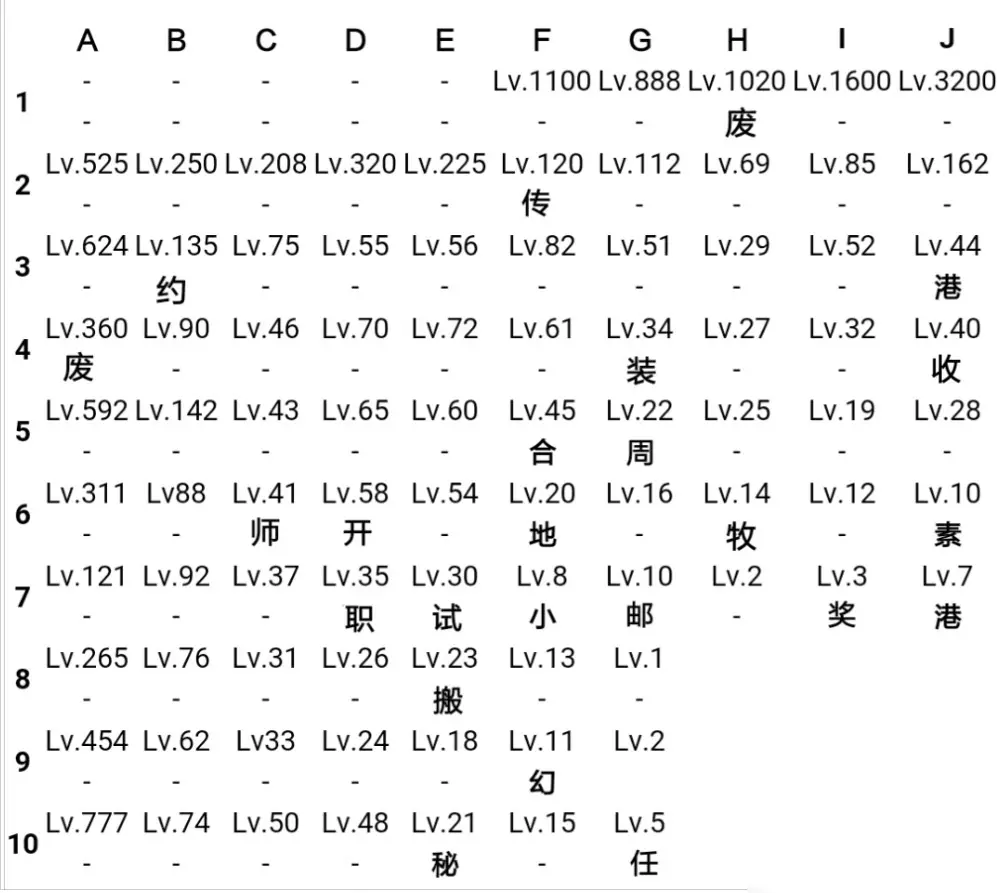 3、s勇上竞技场的话,也可以不要召唤出来,一样的压蓝,不过s勇就只升魔力与攻击。s勇不压蓝一样有战斗力。 4、不要使用钻石,钻石只用于买狗粮 移动混沌岩。调查失败时可以考虑使用。调查混沌岩 高级仓库 龙小屋 领土填埋的时候我是用钻石的,因为长期来看这点钻石不多。当然,这是指调查成功率在75%以上的情况下 5、如果想地图全覆盖的话,可以考虑四城位置为75 70 46 55中心点,29 32 27 52中心点,31 24 33 26中心点,最后一个建城位置不太好描述,就是假如你1城是建在地图最左上的位置,那么建城位置就在这个位置往左上偏移一格。(所以我想吐槽建城时会为雾预留一格派遣位置的这个机制。高台也有这个问题,否则真正地图全覆盖可以在目前这个位置向左上偏移两格。)然后一个要点,用桥将地图四周的最外边两格铺满(桥研究获得)。因为上述机制,会导致最外两格高台覆盖不到,如果小人挖地导致有了浮木,浮木上会刷怪的。五城放20的中心位置。这个城等其他四城90级的时候是要敲掉的,可以在这个位置重新建一个城,也可以不建。我建议2城建在20中心位置