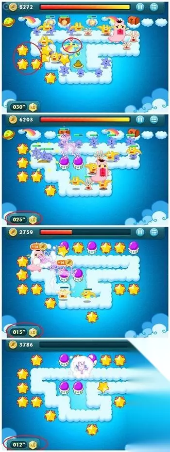 跟第一关差不多,也是BOSS很弱,所以重点还是先不打BOSS,先清道具。不过这一关时间减少了10秒,可用的道具也没有像魔法球那样攻击力大的,所以这一关的道具我只用星星 道具里的魔法球。 依旧是在清道具过程中,把所有可能威胁(打到)BOSS的炮塔卖掉,免得道具还没清完BOSS就OVER了。这一关用暂停非常重要,(或者说BOSS模式所有关用暂停都很重要,争分夺秒)比如清完有炸弹的箱子,要立刻点暂停,把可能打到怪的炮塔都卖掉。 总之如下图:这一关炸弹的位置有两处(图中已经圈出来了)