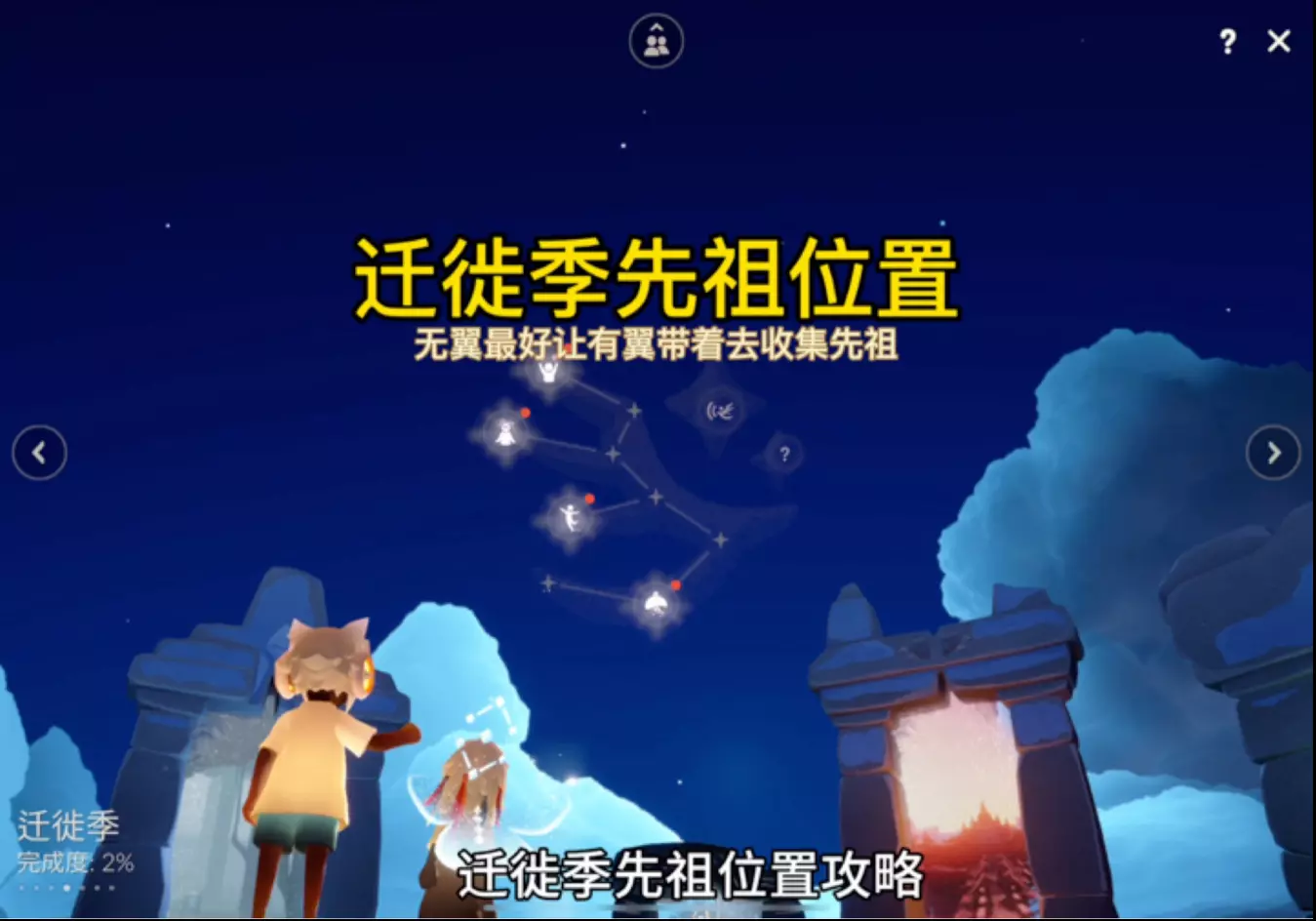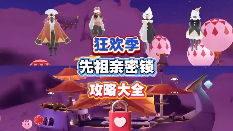 这是一篇光遇狂欢季的攻略内容,为玩家带来狂欢季四位先祖亲密锁的位置攻略,还展示了从遇境传送至新季节地图的方法,以及触发先祖任务的操作,帮助玩家顺利完成相关内容。