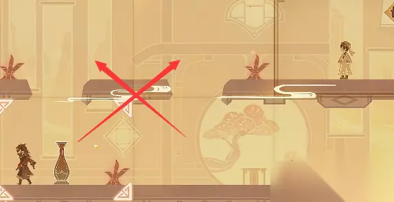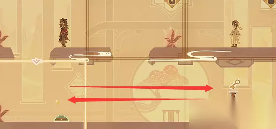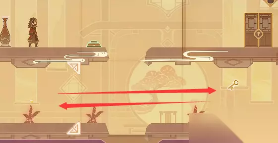 2.然后当小人走到上方中间场景踩到机关之后将左上场景和上方中间场景互换。