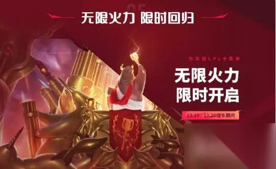 英雄联盟LOL玩的人多吗?英雄联盟LOL游戏最近非常火热,这款游戏以独特的玩法很受玩家欢迎,而且配置要求也不是太高,很多小伙伴不清楚英雄联盟2023下半年无限火力什么时候结束如何解决,为此233乐园小编给大家整理关于英雄联盟2023下半年无限火力什么时候结束解决办法,希望对大家有所帮助。 英雄联盟2023下半年无限火力什么时候结束 2023年10月25日 无限火力结束时间: 1、2023年下半年的无限火力开始时间是9月28日至10月25日; 2、在V13.19版本更新的时候开启。