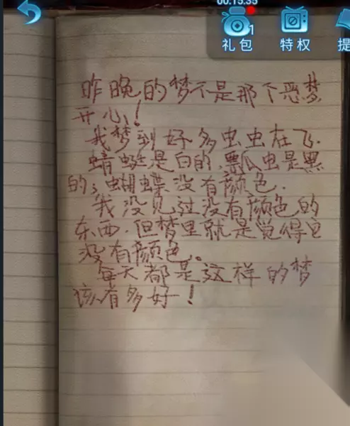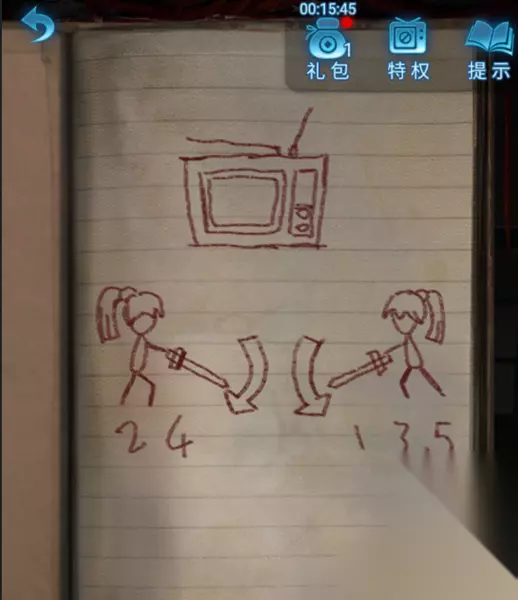 2、然后点击花轿,获得“蜡笔”,观看所获得的日记内容,将电视机顺序放置:左24 右135。电视天线,左长,右短,左边的天线向左,右边的天线右斜方;蜻蜓白色,瓢虫黑色,蝴蝶没有颜色。