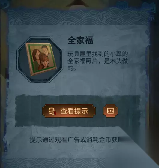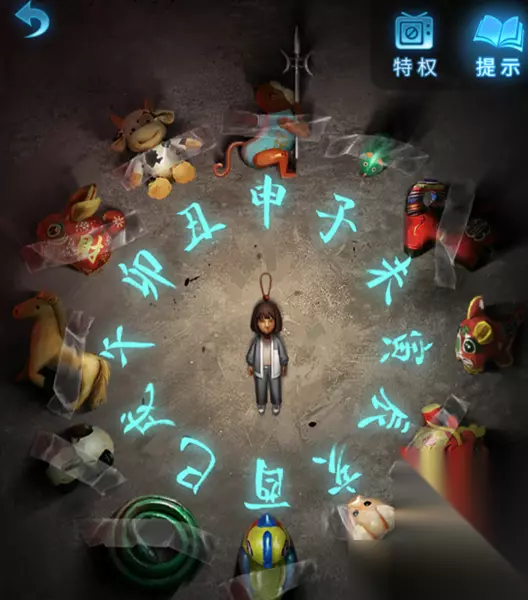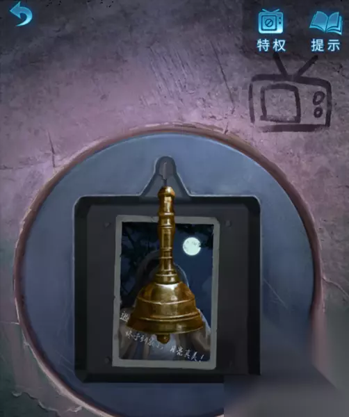 7、完成教室电视机步骤后,接下来选择离开教室,再次进入到树洞房间,点击大门边上的轮盘,点击顺序:3-7-5-6-1,转盘反转,获得“奘铃”,以及“照片”。