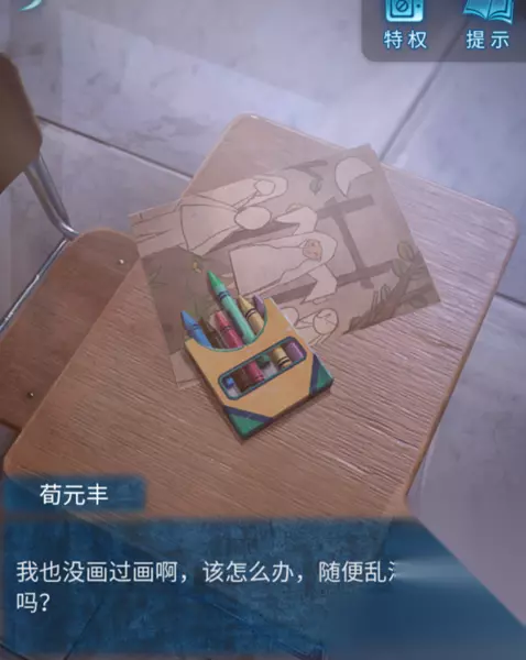 23、在回到教室,选择教室的课桌将“红色蜡笔”放进去点击画纸,开始小游戏,完成后获得“书”。