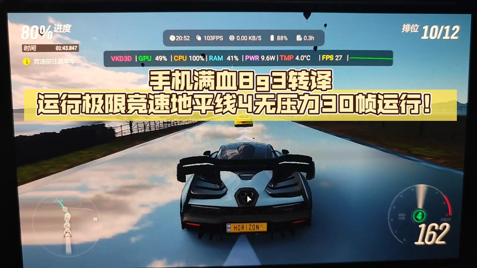 手机本地运行极限竞速地平线4无压力30帧流畅运行! PC模拟器: 盖世游戏5.3.5 手机处理器:高通8g3领先版 兼容层:proton10.0_arm64x_…