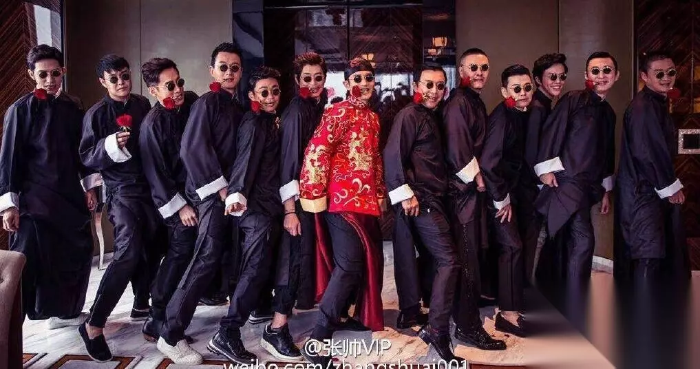 赵薇、向华强、徐峥、舒淇、林志玲、TFBOYS等百余位明星、企业家及社会名流出席婚礼。王思聪、黄渤、李云迪、井柏然等组成豪华伴郎团,伴娘则由李冰冰、倪妮、林志玲等担任,王诗龄当花童。这尼玛,简直就是一个好莱坞电影大片的阵容啊!国内这么大排场的活动,要上溯到当年《建国大业》了。