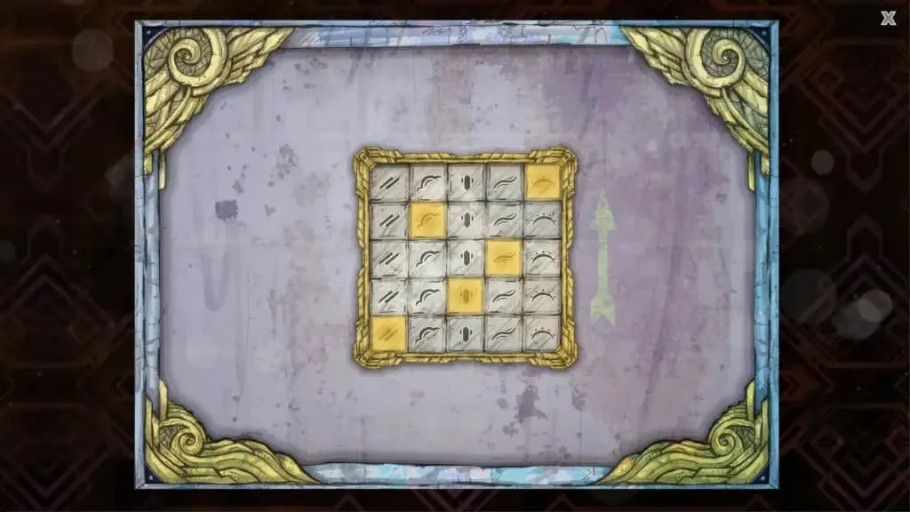 这里的谜题是一个5×5的网格,上面有5种不同的符号。