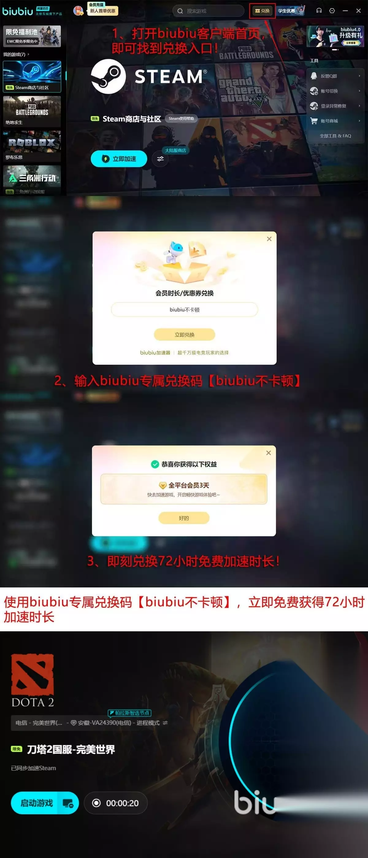 而为了检验性能,也邀请PUBG冠军XDD,他亲自参与多轮高强度实机压力测试,对产品给予肯定。新用户也有福利,加入biubiu立刻获取24小时免费体验,“biubiu不卡顿”的口令额外有3天时长。