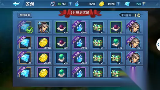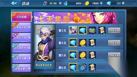 6、签到 签到第二天可以获得一个武将,坚持签到还可以获得大量升星碎片。