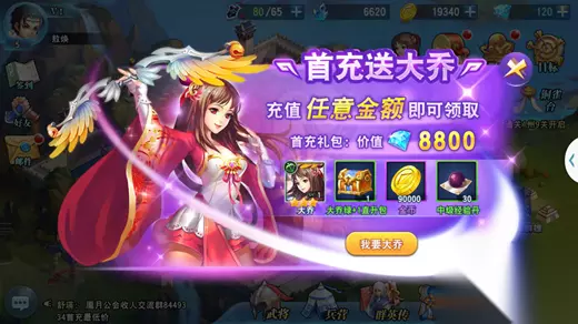 4、首充 充值任意金额就可以获得大乔,直升绿色+1坐拥美人。首充一般都是福利最大,就问你心不心动。