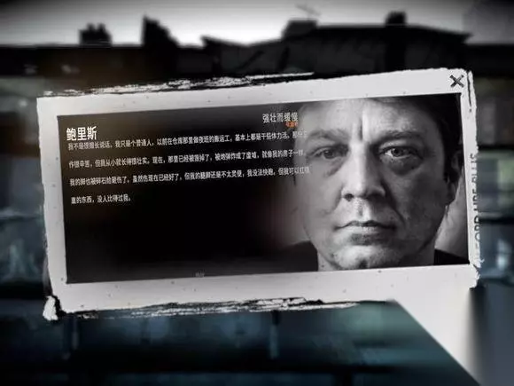 鲍里斯(17格) 战斗力:强大(撬棍暗杀,铲子背刺) 心理素质:还可以 背包:17(最大) 优点:血量最大,战斗力第二名,穿防弹衣也没必要走位了,挨两枪没事,适合值夜班。背包大,带东西多,也很适合拾荒。 缺点:速度太慢,不适合探索和屠杀大地图。玻璃心,不要拿它去干坏事。 看上去鲍里斯是一个憨厚的人,他因为前不久受过伤,而且长得胖,所以很慢,这也可以理解。 推荐指数:5