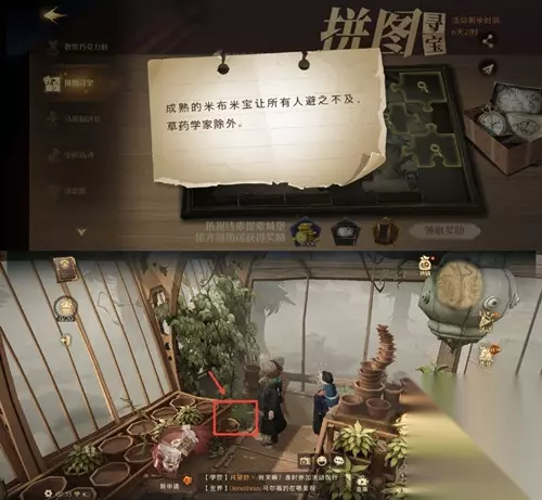 米布米宝拼图碎片获取攻略 拼图线索:成熟的米布米宝让所有人避之不及,草药学家除外。 进入【草药课教室】,找到角落的大型植物,点击脚边抖动的【米布米宝】即可。