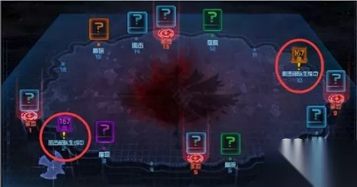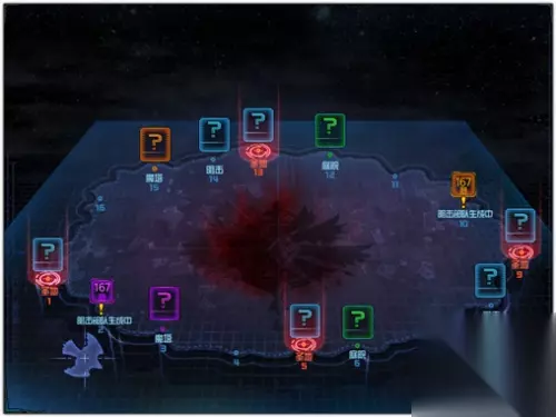 我们所在的斯雷克坤会载着我们会沿着地图逆时针不停的飞行(也就是地图中大鸟所在位置),每个点飞行的时间为15秒,入场之后,地图上1、5、9、13固定生成圣地,同时在其他部位随机生成两个庭院、两个魔塔与两个阻击点。