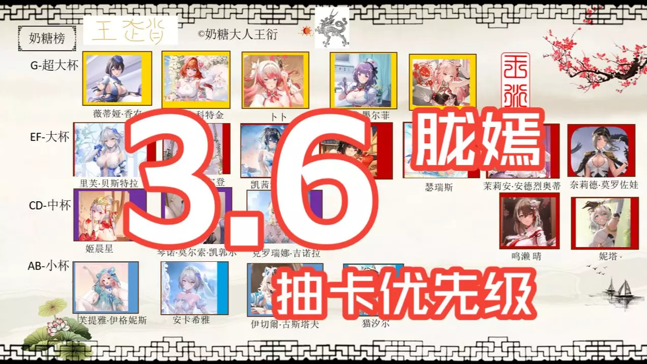 up视频制作还十分生疏,希望大家见谅。 这边给大家进行简单的总结,目前游戏up角色没有进入常驻池的情况下各个常驻c带队输出能力都有T2水准,能够带你渡过前期,那我们需要考虑的就是这些常驻角色对我们后续的配队能否继续提供价值,以此为各位玩家带来的角色抽取推荐。 简单但不准确的当期版本入坑常驻角色抽取省流:土,暗,光,水,火,风