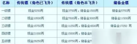 4:涉及NPC及路线: (一)长安镖 1、程咬金 位于大唐官府,在长安左上角,小地图可见 路线:镖局--大唐官府--中间的房子--程咬金 2、空度禅师 化生寺(90,53)房间内 路线:镖局--化生寺 3、秦琼 在秦府(87,76) 路线:镖局--秦府 (二)地府镖 地藏王 位于阴曹地府,在森罗殿(32,66)各王后面的房间 路线:镖局--长安驿站老板(421,64)--国境--地府--森罗殿(32,66)--里间--地藏王 (三)境外镖 1、盘丝镖 春三十娘,白晶晶 盘丝岭(185,127)盘丝洞内 路线:镖局--长安驿站老板(421,64)--国境--境外--盘丝岭--盘丝洞(185,127)--春三十娘,白晶晶 2、五庄观镖 镇元大仙 五庄观大殿内(55,35)c837da89a7cc1828 路线:镖局--长安驿站老板(421,64)--国境--境外--五庄观--大殿(55,35)--镇元大仙土地(93,12)去南瞻部州 3、狮驼岭镖 大大王 狮驼岭(115,23)洞内 二大王 狮驼岭(27,82)洞内 三大王 狮驼岭(13,39)洞内 路线1:镖局--长安驿站老板(421,64)--国境--境外--狮驼岭(此条路线较近,但因为境外的岔路极多,容易迷路,所以不熟悉地图的或者路痴玩家*^_^*请采用路线2) 路线2:镖局--江南野外--建业--东海湾的船夫(58,20)--傲来--花果山的土地(26,101)--北俱的地遁鬼(198,7)--西牛的贺州土地(93,12)--南瞻部州--狮驼岭(虽然远点,可是不会迷路) 4、魔王寨镖 牛魔王 魔王寨(90,70) 路线和狮驼岭类似,有两条可以选择,不再赘述。 (四)天宫镖 杨戬,李靖 天宫(152,60)大殿内 路线1:镖局--长安驿站老板(421,64)--国境--境外的南瞻部州土地(55,15)--西牛贺州的天将(23,55)--天宫(152,60)大殿 路线2:镖局--江南野外--建业--东海湾的船夫(58,20)--傲来--花果山的土地(26,101)--北俱的地遁鬼(198,7)--西牛贺州的天将(23,55)--天宫(152,60)大殿 (五)方寸镖 菩提祖师 方寸山(128,132)大殿内 路线1:镖局--长安驿站老板(421,64)--国境--境外的南瞻部州土地(55,15)--西牛贺州--长寿村--方寸山(128,132)大殿 路线2:镖局--江南野外--建业--东海湾的船夫(58,20)--傲来--花果山的土地(26,101)--北俱的地遁鬼(198,7)--西牛贺州--长寿村--方寸山(128,132)大殿 (六)龙宫镖 东海龙王 龙宫(113,62)水晶宫内 路线:镖局--江南野外--建业--东海湾的老虾(108,89)--龙宫--(113,62)水晶宫 (七)女儿镖 孙婆婆 女儿村(16,121)房间内 路线:路线2:镖局--江南野外--建业--东海湾的船夫(58,20)--傲来--女儿村 5:任务奖励: 名称传统镖(角色已飞升)传统镖(角色未飞升) 储备金镖 一级镖银现金5250现金3750,储备1500储备5750二级镖银现金10500现金7500,储备300储备11500三级镖银现金15750现金11250,储备4500储备17520四级镖银现金21000现金15000,储备6000储备23000五级镖银现金26250现金18750,储备7500