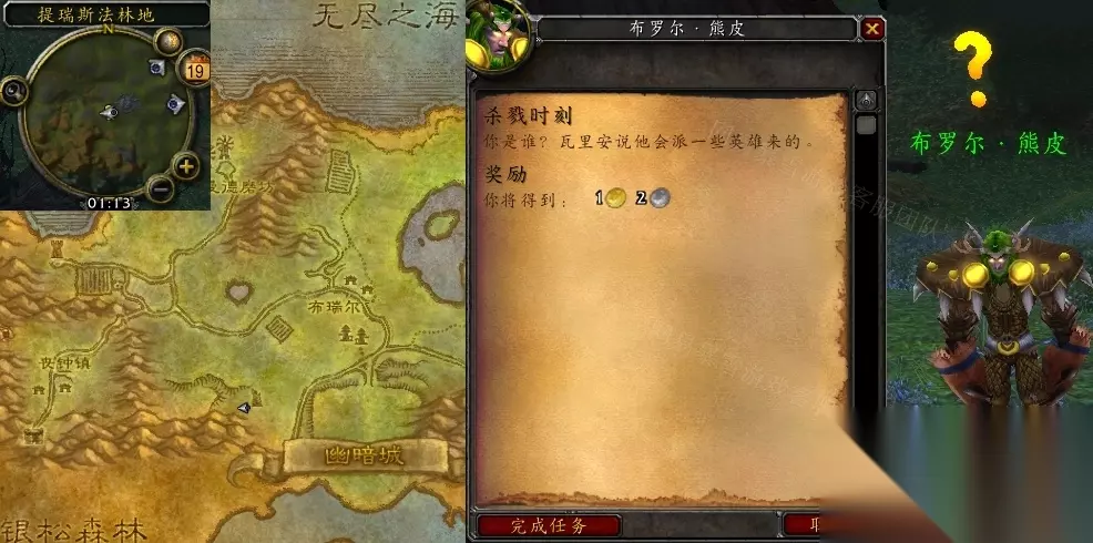 在魔兽世界游戏中,《魔兽世界》怀旧服WLK杀戮时刻任务后续怎么做是游戏中玩家需要了解的一个重点,但玩家需要找到正确的方法才能找到《魔兽世界》怀旧服WLK杀戮时刻任务后续怎么做,让我们看看《魔兽世界》怀旧服WLK杀戮时刻任务后续怎么做吧。 怀旧服WLK杀戮时刻任务后续怎么做 系列任务 浴火重生 造化弄人 政变 杀戮时刻 幽暗城之战 接取等级:71 接取NPC:瓦里安·乌瑞恩国王(暴风城,暴风要塞) 完成NPC:布罗尔·熊皮(提瑞斯法林地) 奖励声望:10点暴风城、10点无畏远征军 任务开始: