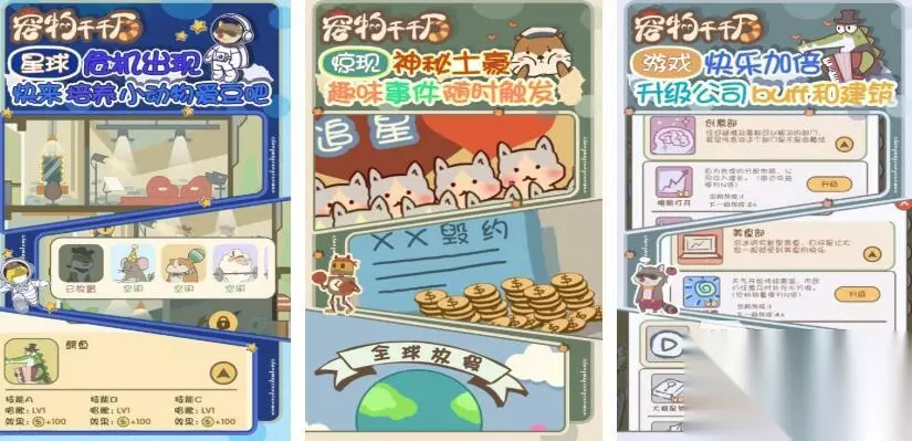 《全民养宠物》这款游戏中共有数十种不同类型的宠物,每个宠物的外形和性格都完全不同,玩家可以通过合成的方式来获得更稀有的高阶品种,而宠物等级越高,最后所获得的金币也就越高。玩的时候还可以通过喂食和训练的方式来提升宠物的各项指标,而冒险和互动玩法也可以让养宠过程充满了惊喜,完善的社交系统还支持玩家之间互相拜访小屋。 高速下载 普通下载 2、《宠物千千万》