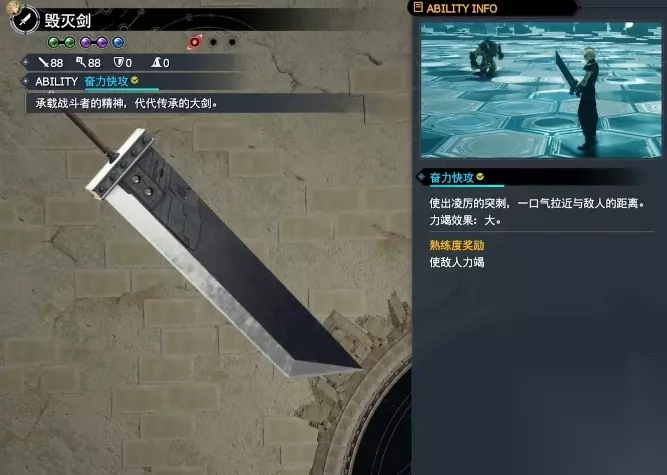 一、毁灭剑 克劳德的起始武器。 技能:奋力快攻。