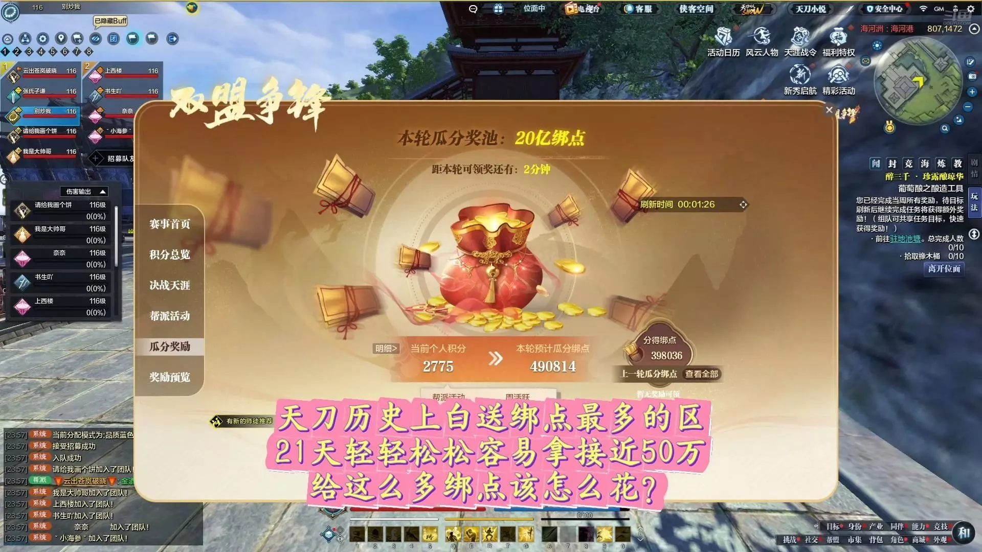 百亿绑点分红还在,基本上可以分100万绑点左右 然后1元的大铁还在 还是双盟争锋的模式!