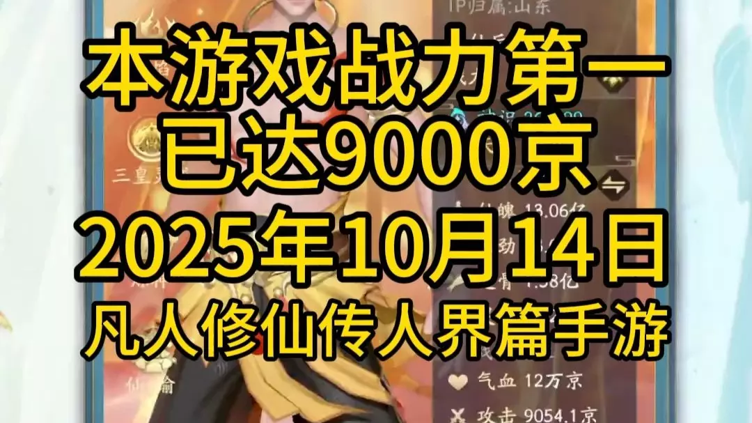 凡人修仙传本游戏战力第一已达9000京