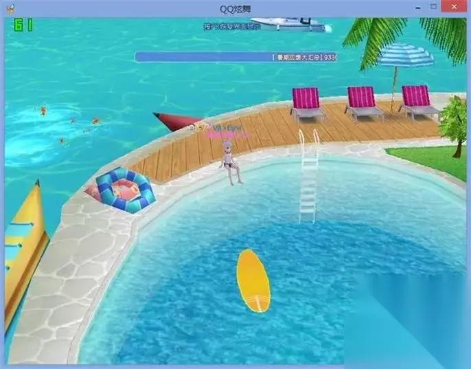 qq炫舞游泳池进入方法 1、登录你的QQ炫舞账号,并输入密码。等待一段时间后,你将登录到主界面。这次,我们不要选择游戏大厅,而是选择休闲中心。在休闲中心,我们将被带到海滩。 2、在右上角点击一下或切换画面,你会看到左侧出现了三个选项:浪漫海滩、炫舞排队和见证仪式。在这里,我们只需要选择浪漫海滩,然后选择一个人比较少的区域进行进入。 3、进入社区后,我们可以大致浏览一下,并找到游泳池。其实很容易找到,它就在海滩附近。你可以看到一个粉色的滑梯,通过滑梯就可以进入游泳池。不过现在暂时无法进入。 4、首先,我们必须切换到Q版形象。点击人物,右击人物,选择切换至Q版形象。然后,我们还需要穿上泳衣才能下水。如果你已经有泳衣了,可以在背包中换下装。 5、如果你没有泳衣,可以在商城中购买。点击商城,搜索“泳衣”两个字,然后将其加入购物车并进行结算。购买完成后,装备好泳衣。然后点击粉色的滑梯,就可以下水游泳了。