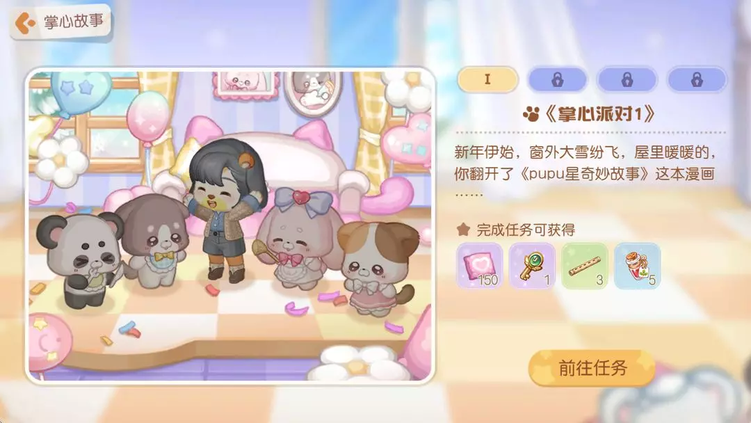 遥远的pupu星上,住着一群手掌大小、毛茸茸的可爱小动物。它们为了庆祝新年到来,专门举办了一场小动物派对!全新版本「掌心派对」温暖上线,全新装扮「小狗噗噗套装」「小兔妮妮套装」登场,来参加毛茸茸、暖乎乎的小动物派对吧!限时小游戏「派对扫除」上线,施展清洁魔法,让pupu星永远保持纯净和快乐!此外,还有限时宠物「魔法小兔妮妮」等内容上线。一起在软萌派对里度过一段幸福时光吧~