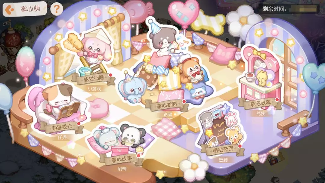活动介绍:想要顺利举办小动物派对,需要大家一起帮忙!在活动期间,完成委托任务,即可获得大量的「暖萌抱枕」。「暖萌抱枕」可以在千金商店兑换各种礼品奖励。