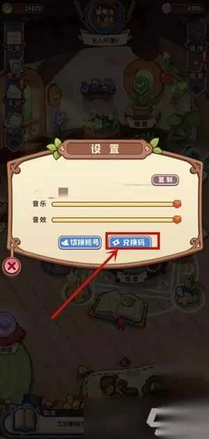 3、弹出设置页面,点击下方的兑换码。