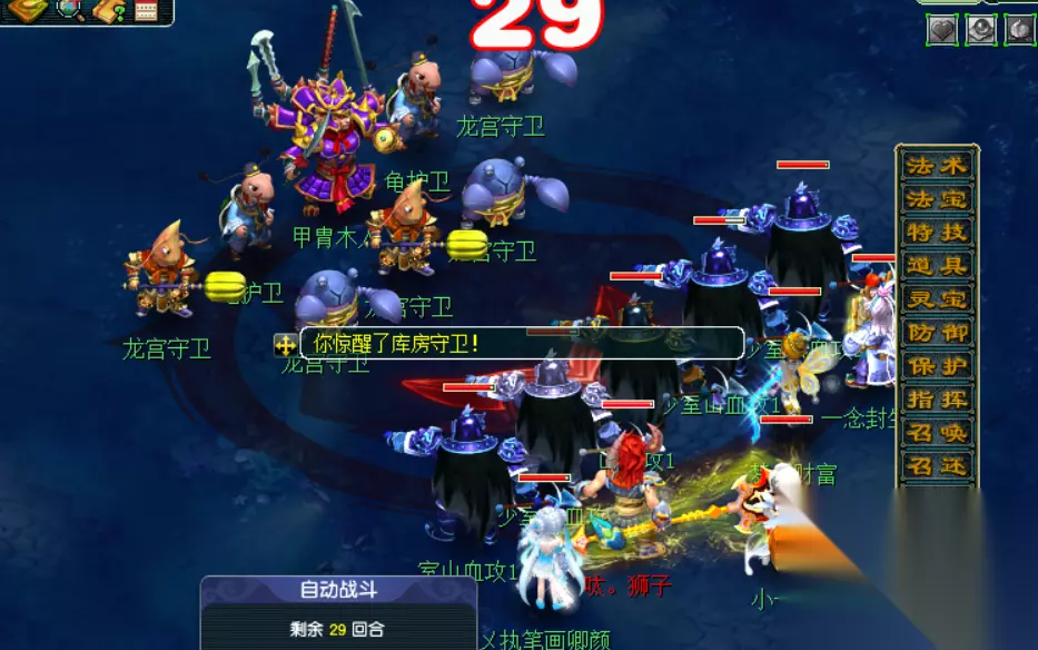 入龙宫破除龙王布雨节界,这里如同场景暗雷,会随机遇怪,最好与团队商量好,每个队伍杀两个,免得来回跑遇怪,毕竟武器耐久也不便宜。如果是卖进度就忽略吧。