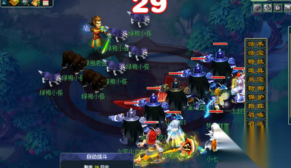 打败混世魔王以及他的手下,位置一般在花果山左上角,或者在中路。分为三场战斗,混世魔使,混世妖将和混世魔王。其中击杀混世魔王有机会获取“彩果”,“兽决”。