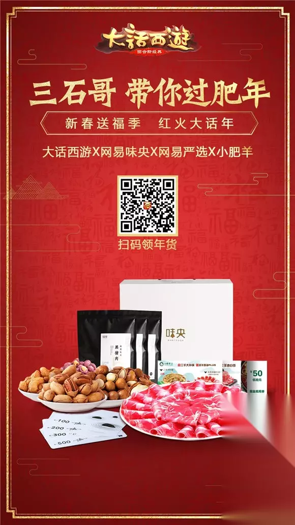 同时,新春送福季活动也将火热开启,官方将携手网易味央、网易严选等多个品牌,为玩家带来三石哥丁磊精选年货礼包,玩家参与微博、微信以及论坛等自媒体平台活动,即有机会把诸多优质年货带回家! 众星接力送祝福 开启鸡年最强运 喜庆热闹的新春佳节即将来袭,在此玩家团聚之际,“王牌唱将”周深、“高颜摄影师”金浩森等众多明星大咖,也纷纷通过视频的方式为大话玩家送上新年祝福,祝所有玩家都能在新的一年里,鸡驴不断、好运连连!此外,“新春家宴”、“走亲访友”、“福星高照”等一系列福利满满的新春活动也将火热来袭,赶快加入《大话西游》手游,赢取海量新年福利吧!
