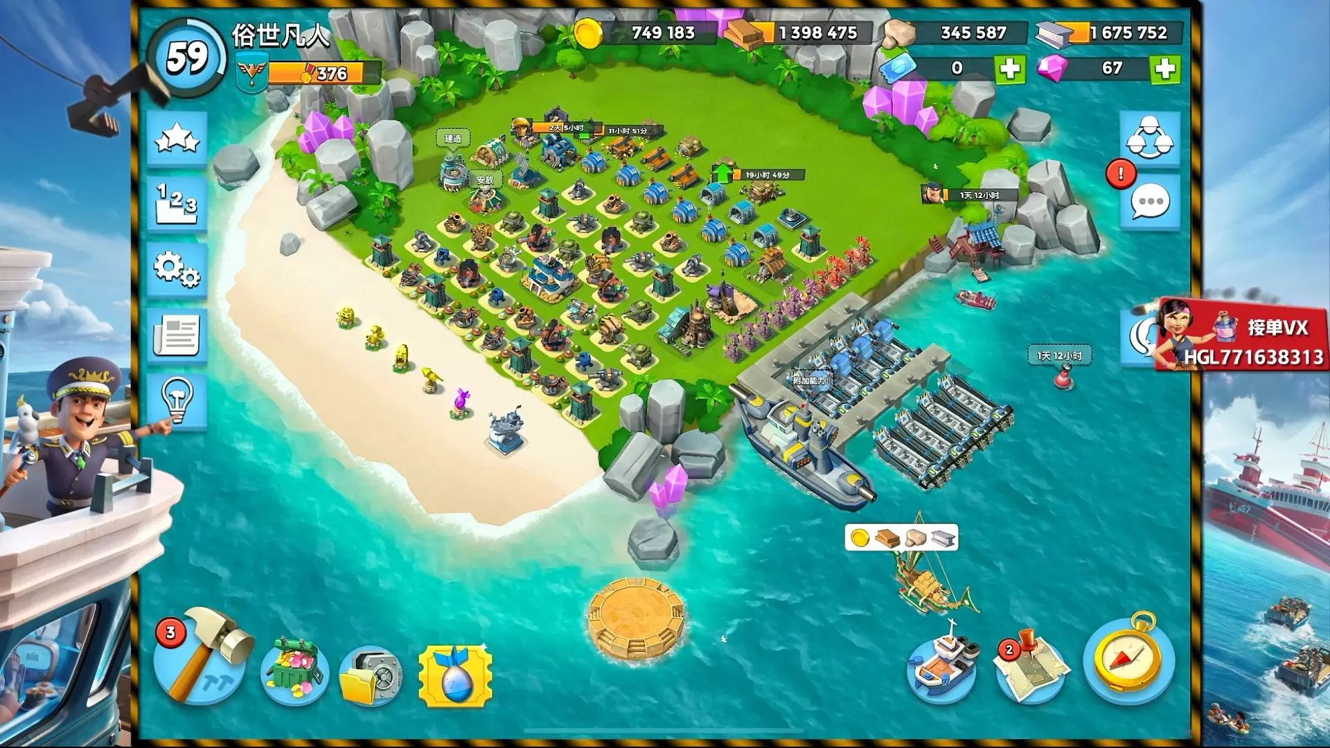 这是玩家首次体验策略游戏《铁锈战争》的海岛地图,展示了游戏里海岛基地的建造布局,基地中分布着各类防御设施与建筑,还显示了游戏内的资源数值。