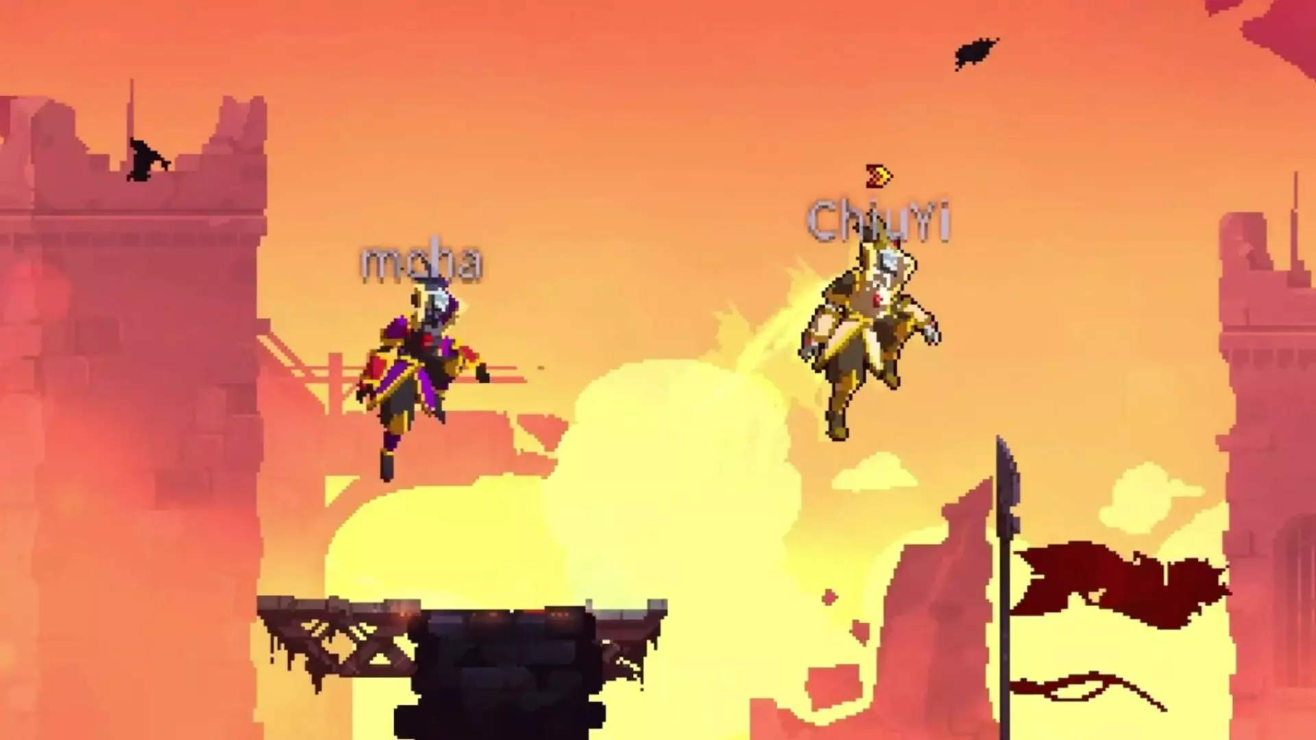 这是死亡细胞的趣味模组内容,在该死亡细胞模组中,打开观星台大门放出原本在观星台的收藏家,让收藏家走出观星台逛大道,却发现不擅长运动的收藏家没走几步就被台阶卡住,十分有趣。