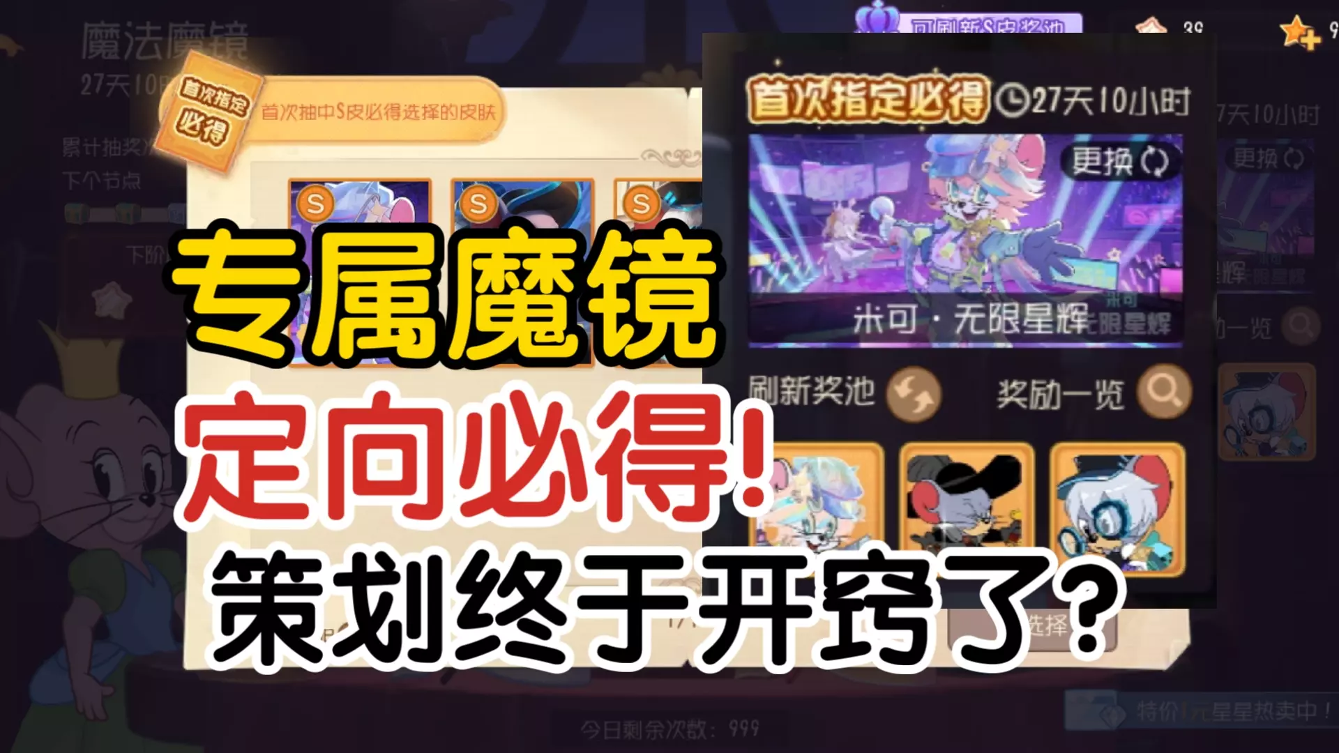 这是一则猫和老鼠手游的搞笑抽奖内容,作者在猫和老鼠的魔法魔镜抽奖玩法中,因当前奖池UP牛仔杰瑞皇家爵士鼠心生期待,开展抽奖尝试,分享趣味抽奖过程。