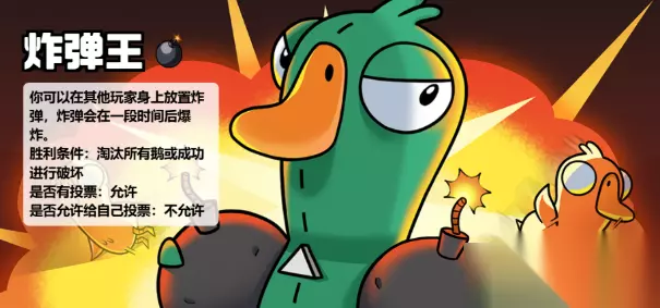 鹅鸭杀手游炸弹王玩法解析 一、技能机制 1、炸弹王是鸭子阵营的角色职业,其核心能力是放置炸弹。 2、该技能允许他在靠近其他玩家时秘密布置炸弹,被标记的玩家头上会出现15秒倒计时。 3、在此期间,若该玩家与其他玩家接触,炸弹可传递给对方,但倒计时不重置。 4、一旦倒计时归零,目标将被直接淘汰,且该过程不会触发警报或身份查验机制,隐蔽性极强。这一特性使得炸弹王在扰乱好人阵营判断方面具有显著优势。