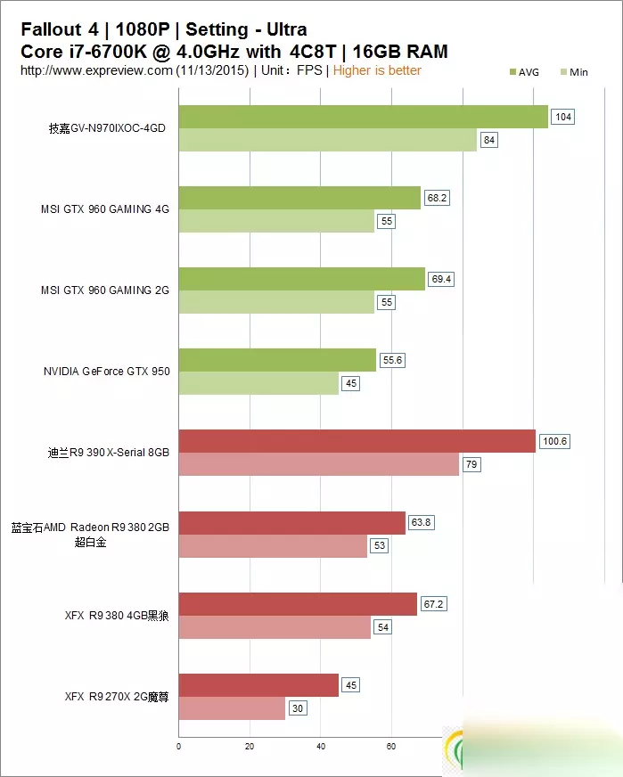 二、配置建议 GTX 960起步,建议显存不低于4GB 首先我们来看看《辐射4》对显卡的需求,测试时使用超频至4.0GHz的core i7-6700K处理器(运行在4c8T模式),游戏选用1080P分辨率,画质方面开启极高画质。