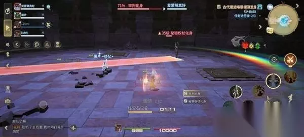 在秘银权杖化身击破前玩家不可走出该范围,其他玩家也不可以进入。秘银权杖化身无法受到来自范围外玩家的伤害。若秘银权杖化身长时间未被击败,则会对全场范围释放AOE技能,造成全队血量压力,所以需在权杖刷新后,由输出职能玩家走入范围激活权杖,尽快消灭。