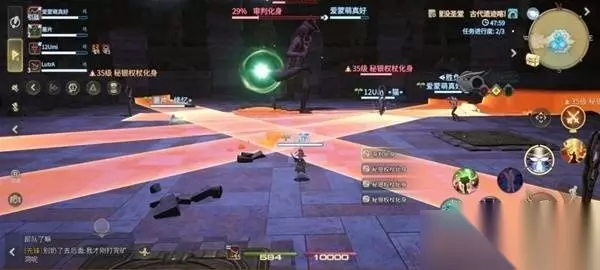 当BOSS血量降低到35%左右时,场地会按照顺序重复召唤秘银权杖化身并持续释放直线AOE攻击。