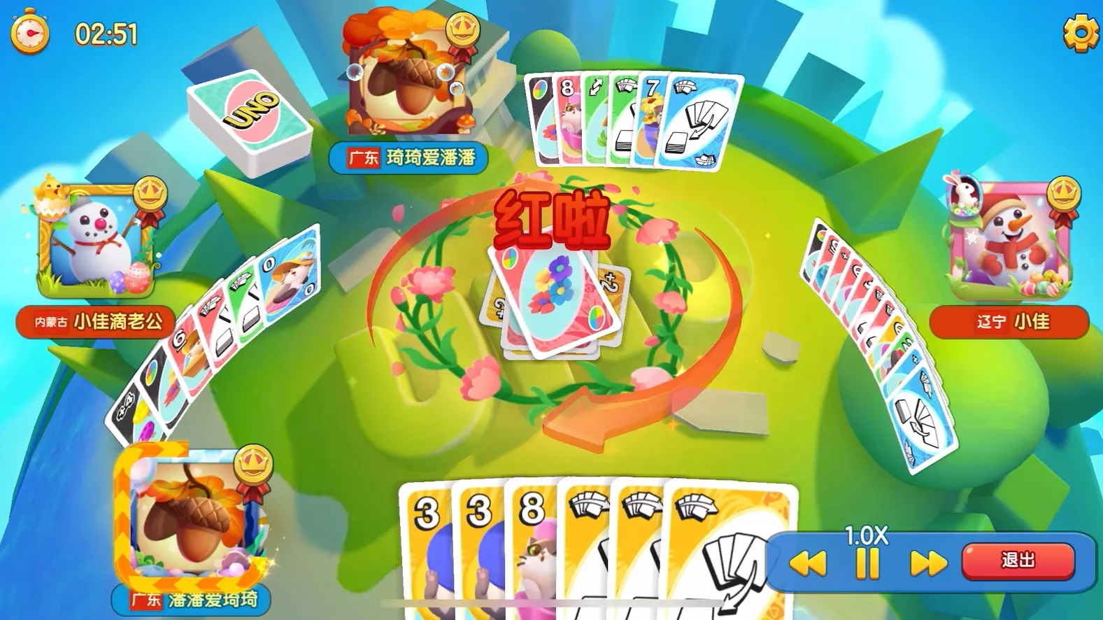 玩个优诺遇到神仙奇葩队友也是够神,在有一张功能牌一张单红牌多张黄同色全出的情况下,我都提前变了色还提醒队友出红牌,结果这个神神还是把黄色同色全出打完了,留着单牌…