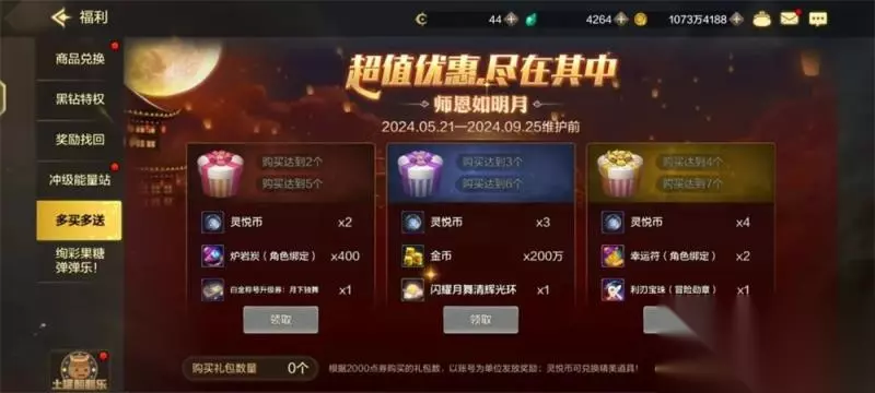 然而买一套导师套只有勋章是毕业的,所以我们还需要多买多送的奖励。购买第2套和第5套导师套的时候能拿到称号升级券,可以将称号升级为毕业称号。 购买第3套和第6套的时候能拿到毕业光环,第4套和第7套能拿到毕业勋章宝珠,等于说多买多送最多买七套就没奖励了。多买多送的奖励用大号领取。