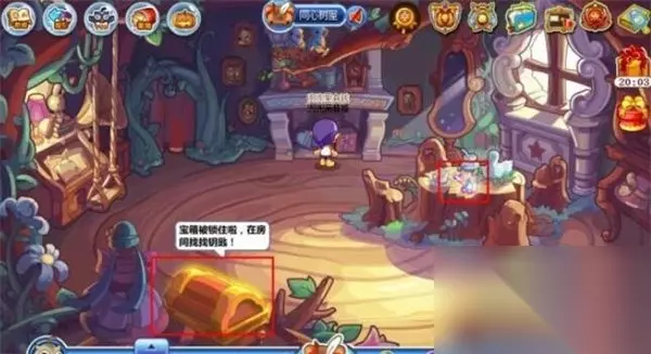 2、接着可以在桌子上获得钥匙,再点击左下的宝箱