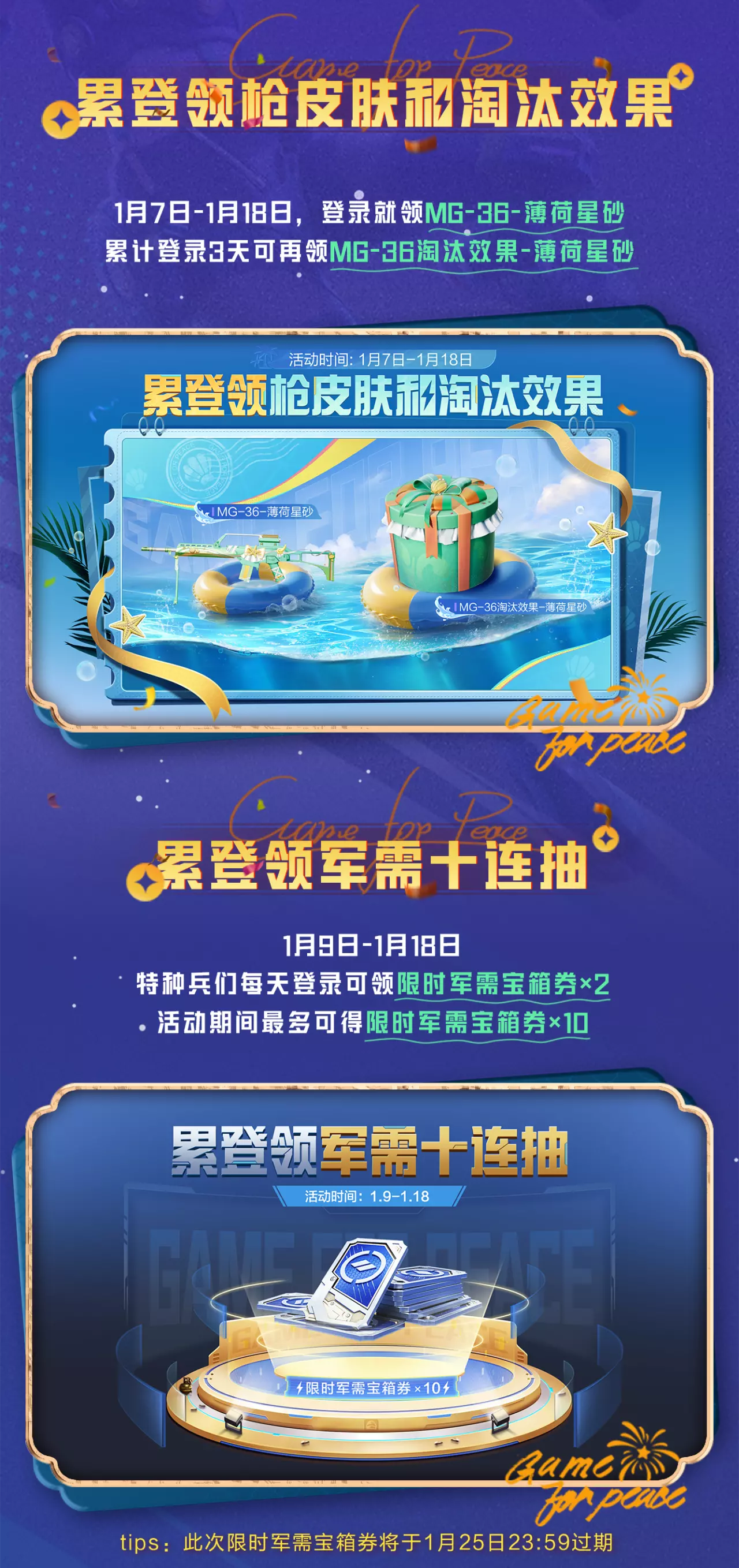 【免费送】新年福利超级加码!十连抽,送!全新套装,送!枪皮肤、淘汰效果,统统送!