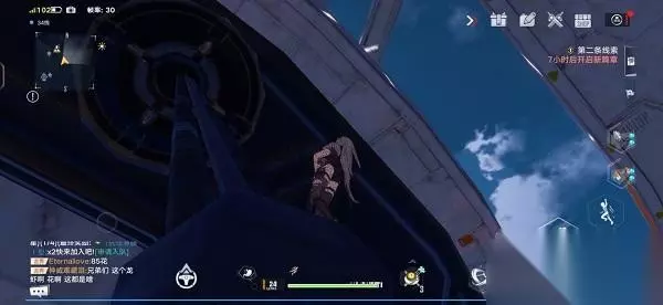 4、使用飞行背包一直拉高度起飞,之后利用钩锁瞄准墙壁的最上方出钩即可