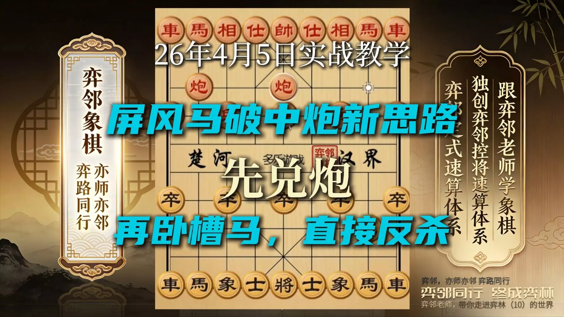 屏风马破中炮,传统思路是防守、顶住、找机会反击。但今天给你一个新思路:不硬扛,主动兑炮,然后快速跳卧槽马形成杀棋。 为什么这是新思路?因为传统屏风马很少主动兑炮…