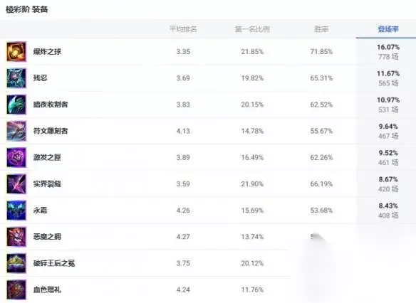 2、棱彩装备推荐 爆炸之球、残忍、暗夜收割者、符文雕刻者、激发之匣、实界裂缝、永霜、恶魔之拥、破碎王后之冕、血色赠礼