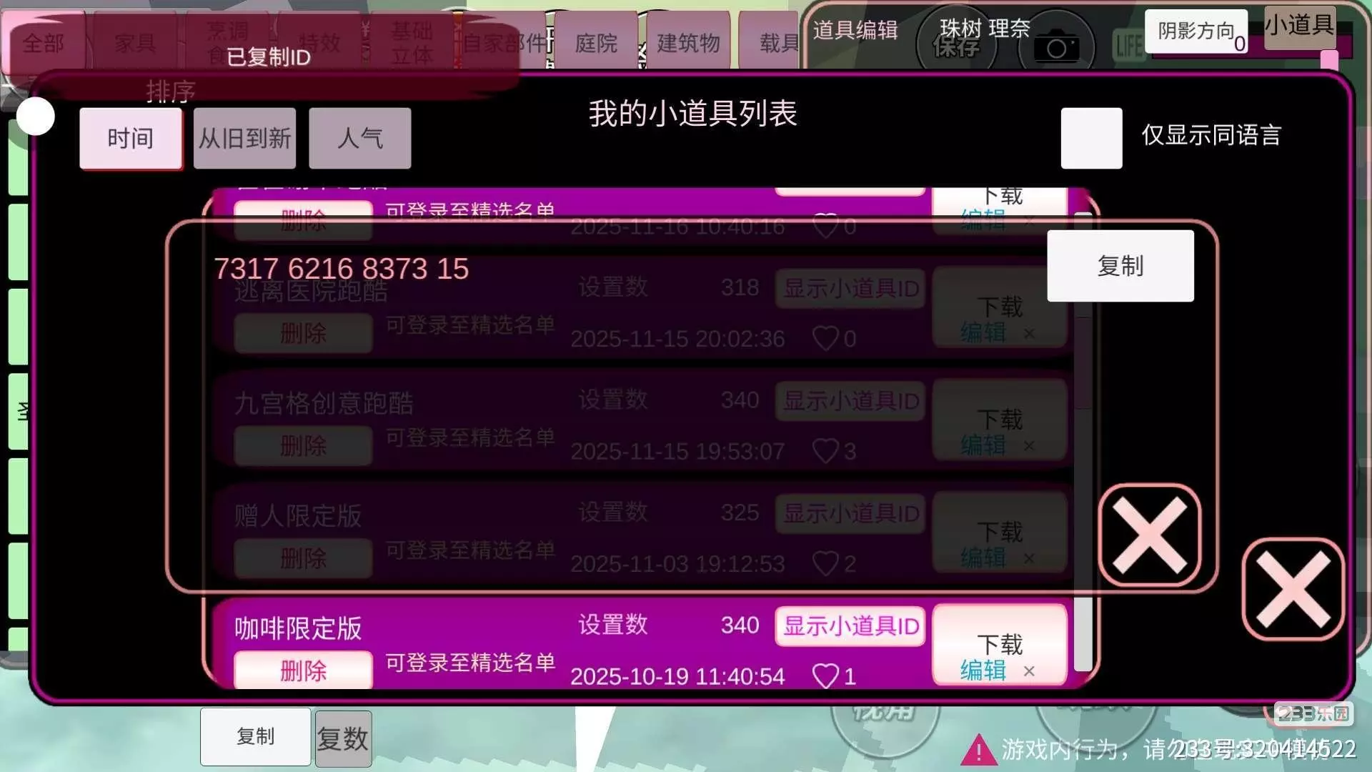 最后是整体和ID啦,有需要的自取啦,然后打卡跑酷要艾特加标明哦