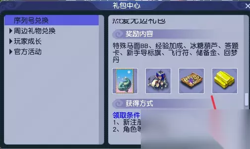 梦幻西游里面有很多的内容,今天给大家带来的是游戏里面新手礼包马面领取方法,还有小伙伴不清楚要怎么去领取,那么下面就是具体的内容,来看看吧. 梦幻西游新手礼包马面领取方法 满足条件的玩家,使用激活码:MHZB-1111-1111-1111到游戏内兑换新手礼包,内含:答题卡、飞行符、储备金、经验加成、新手导标旗、大闸蟹、章鱼变身卡、师门助战-泡泡、4技能高必马面、摄妖香、大表情券、回梦丹。 领取方式